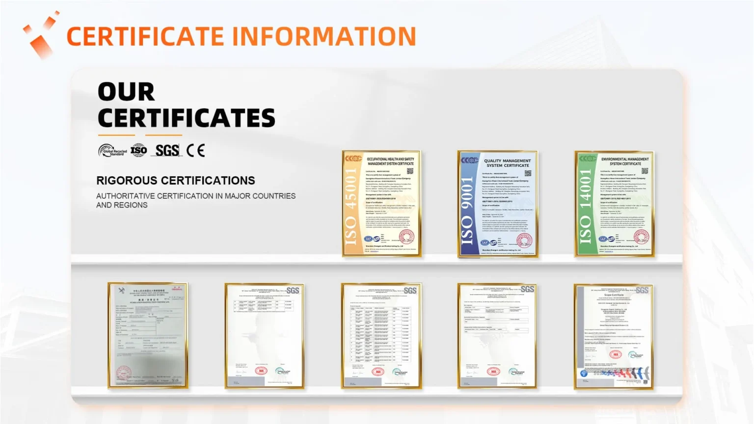 - ✅Quality Management System Certificates (ISO 9001, ISO 14001, ISO 45001)